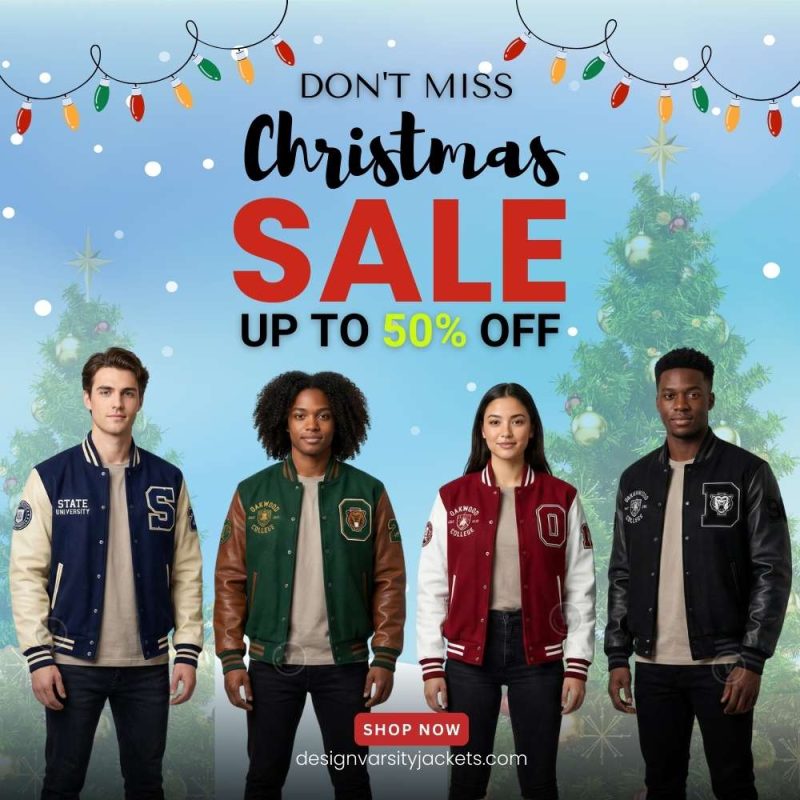 Browse Holiday Deals – Explore our Christmas sale collection featuring discounted varsity jackets and apparel