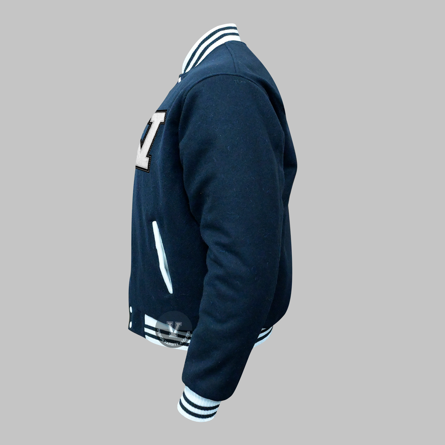 The body is typically made from heavyweight wool, providing warmth, structure, and a traditional varsity look. Sleeves are available in genuine leather or premium vegan leather, offering durability and a clean finish. For customers seeking lighter wear, alternative fabric constructions are also available.