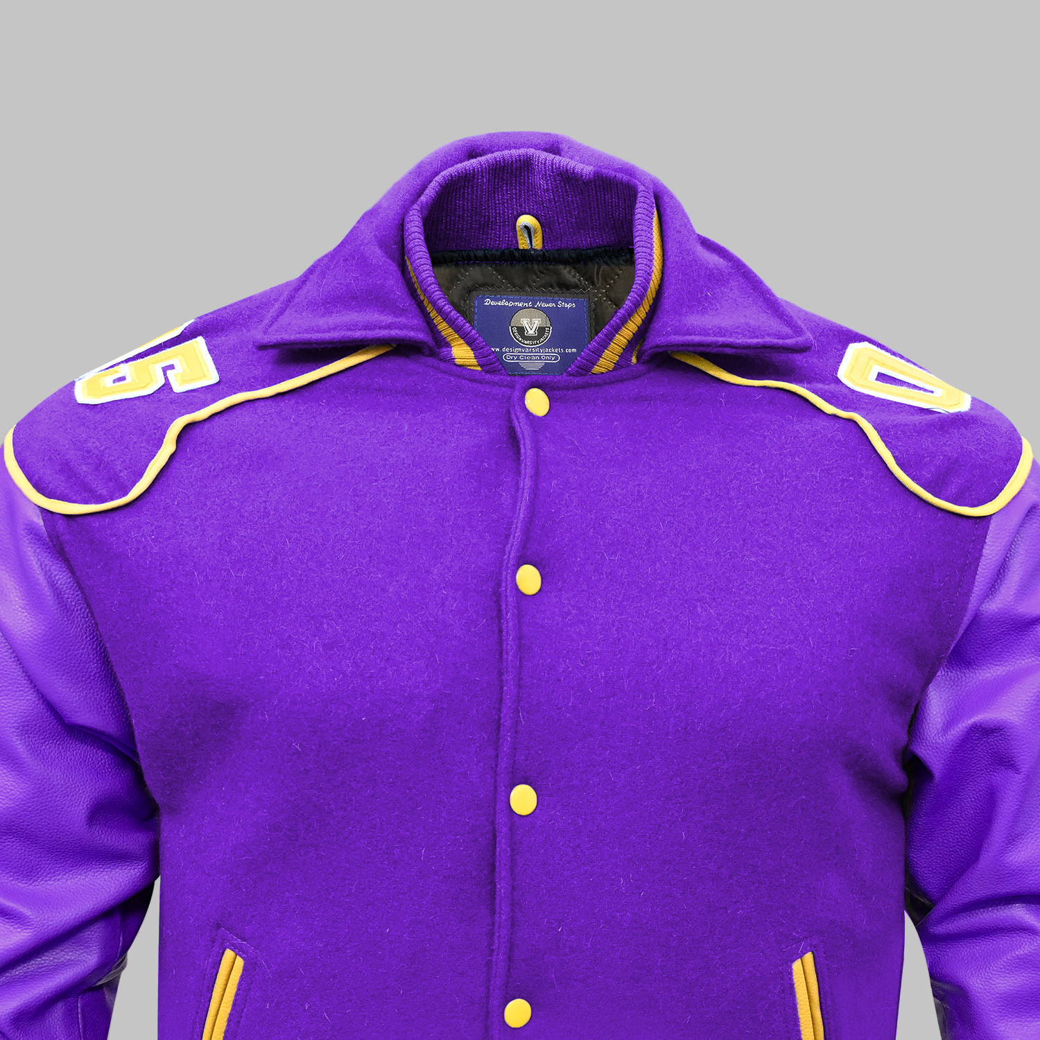 Our Purple Letterman Double Collar Jacket program is optimized for bulk, wholesale, and large-scale production.