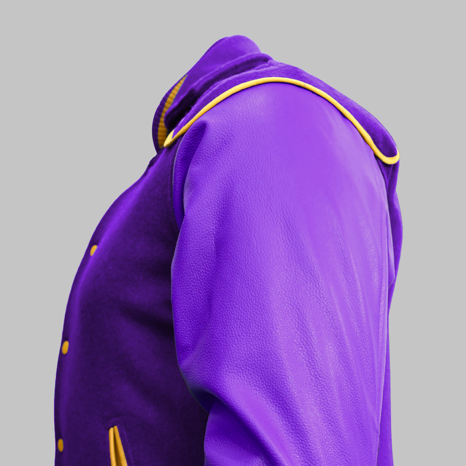 Your Purple Letterman Double Collar Jacket is crafted to represent pride, achievement, and identity.