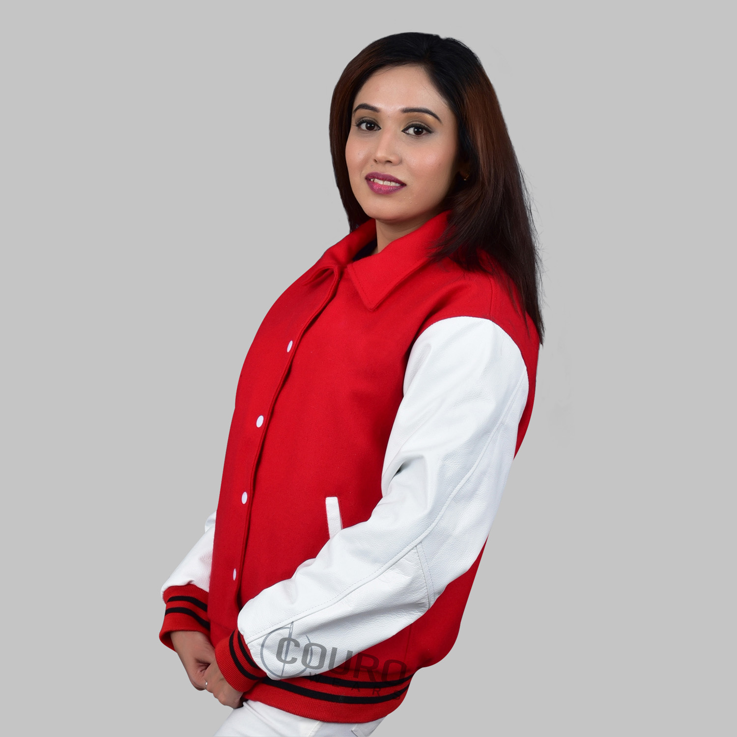 Red and White Varsity Jacket – Timeless Athletic Fashion